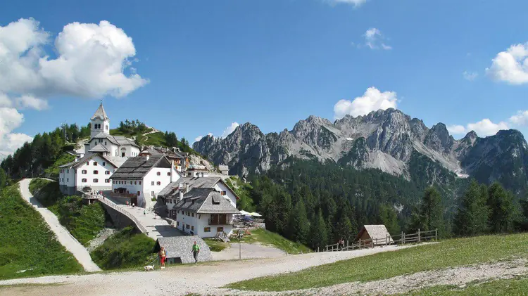 Od Trbiža po ulici Via Romana, ki se nahaja v zgornjem delu mesta, zavijete na ulico Via delle Pinete, ki se vzpenja v bližini Gozdarske palače.